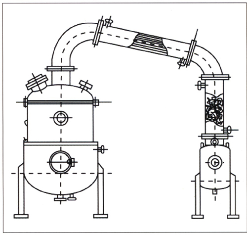 | 濃縮罐、冷凝器一、汽液分離器、冷凝器二、受液桶六個(gè)部件組成 |